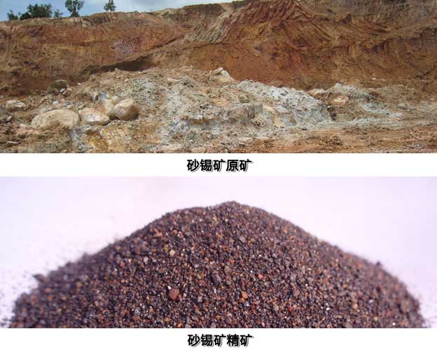 我們首先來一起看一組照片,該照片分為上下兩部分,上部為砂錫礦原礦的大致圖片,下圖為經(jīng)過跳汰機(jī)選礦提純后的錫精礦圖片。